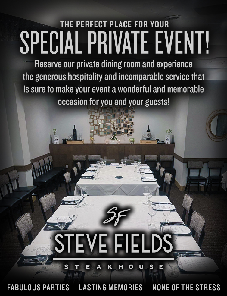 Whether celebrating a special occasion with family and friends or hosting a corporate event, Steve Fields and his staff will be delighted to take care of all your special event needs.